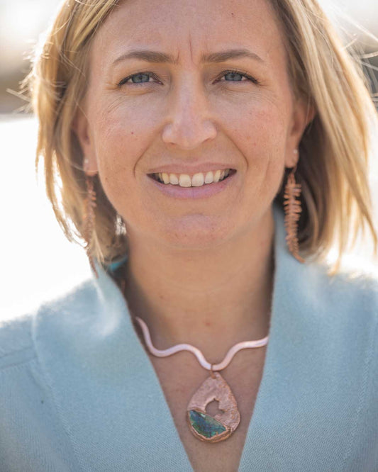 Jewelry made with pure copper, real silver, gold, gemstones, sea glass, botanicals and other organics like twigs and seashells.