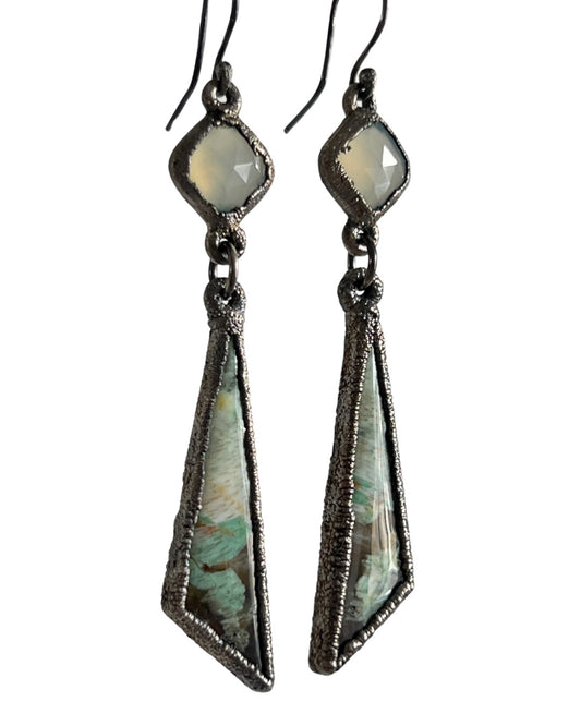 Opal Wood Earrings in Silver with Chalcedony